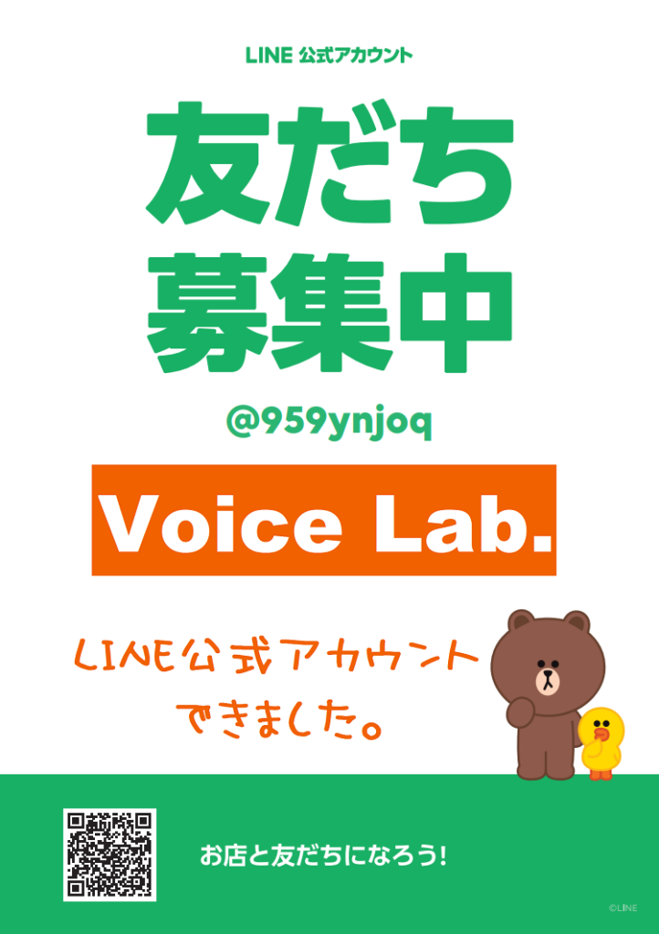 さて表題の通り、Voice Lab.も時代の流れに乗ってLINE公式アカウントを開設しました(っていうかもうすでに遅いかもですが(^^;)