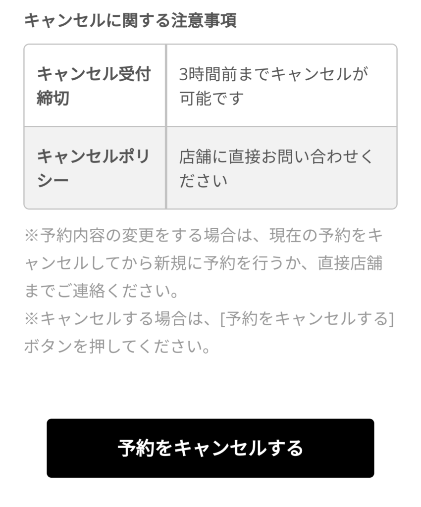 ③ 開いたページの下部にある『予約をキャンセルする』をタップ(クリック)します。