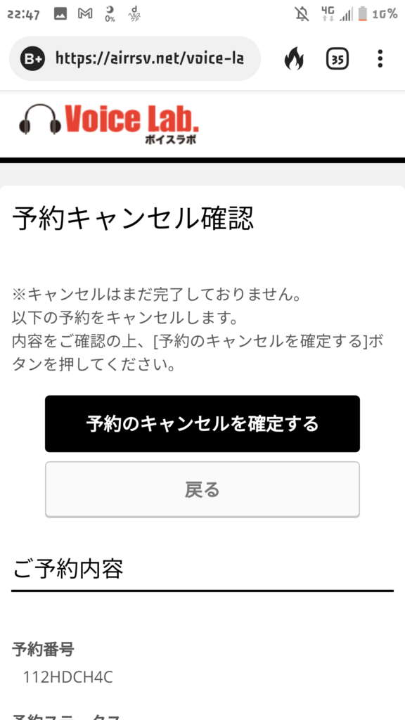 ④ 開いたページにある『予約のキャンセルを確定する』をタップ(クリック)します。