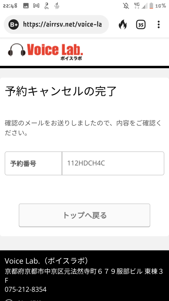 ⑥ 自動配信で予約キャンセルの確認メールが送られてきます。