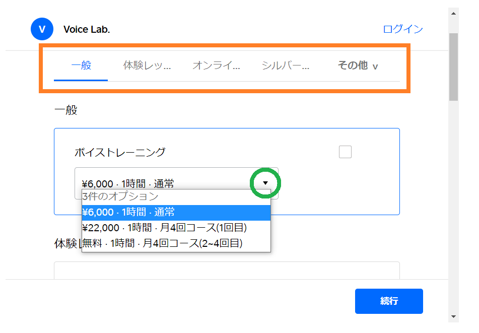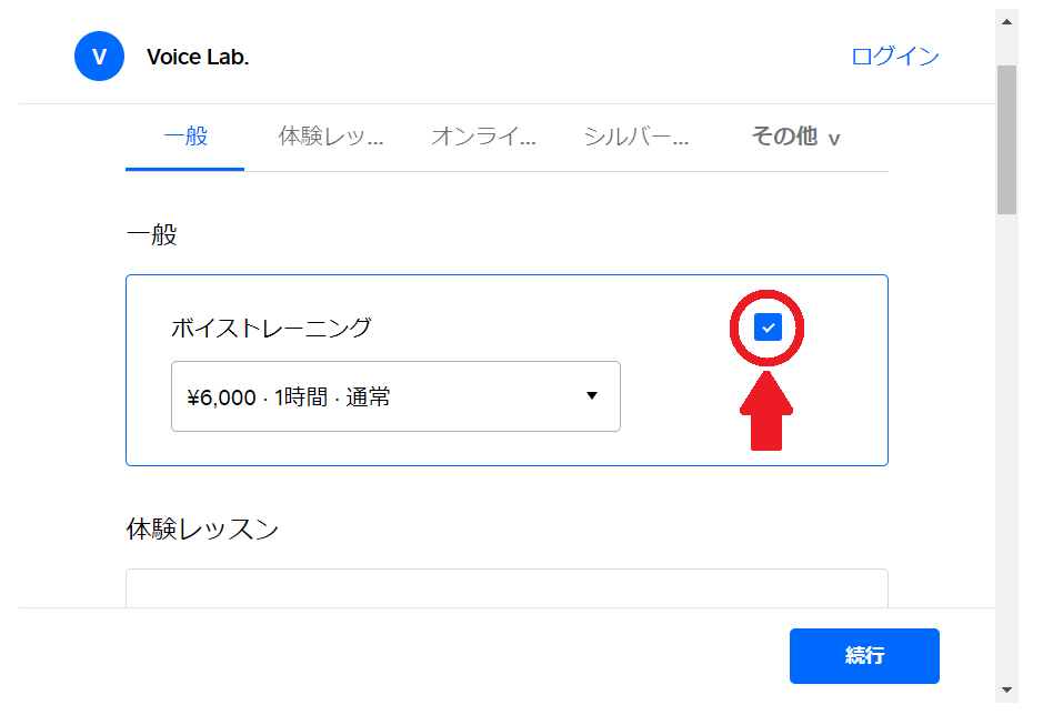 一般・体験レッスン・オンライン・シルバーの方(60歳以上)・高校生以下(その他の中にあります)・音声障害の方(その他の中にあります)