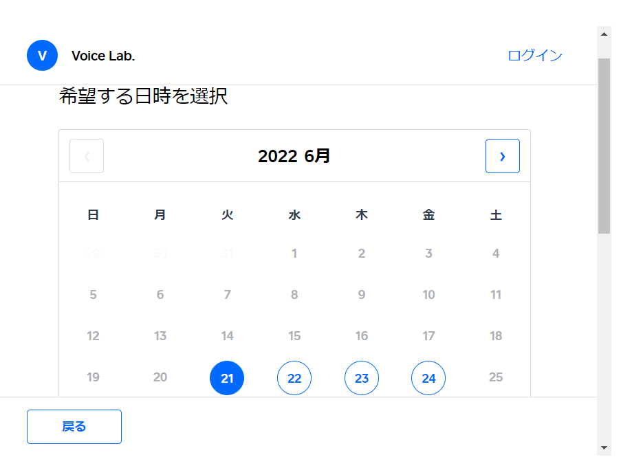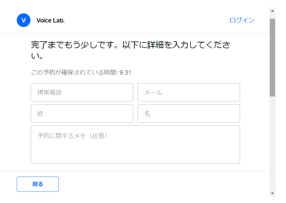 ネット予約のページ(https://voice-lab.net/yoyakusystem.html)を開いて下さい。